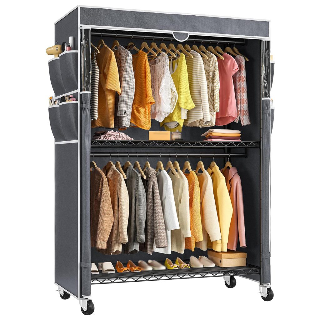 Clothing Rack with Cover, P1C Rolling Closet Rack with Wheels, Metal Garment Rack for Hanging Clothes, Clothing Storage Wardrobe with Cover, 36.2″W x 16.5″D x 80.5″H, Black, Load 450 Pounds