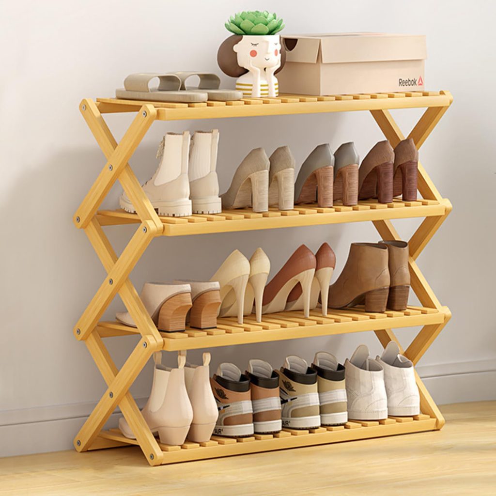 Shoe Rack for Closet, Sturdy Shoe Shelf for Entryway, Space-Saving Shoes Organizer and Storage, 27.6″ x 11.8″ x 22.6″, Black
