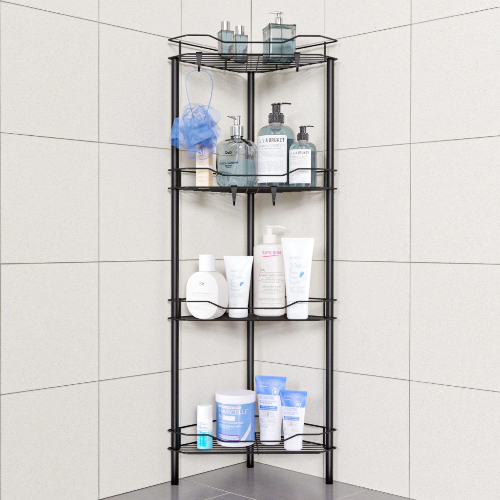 Floor Standing Corner Shower Caddy Organizer: Tastywrap 4 Tier Corner Shower Caddy Stand with Hooks, Floor Standing Shower Organizer for Bathroom, Rest Room, Black