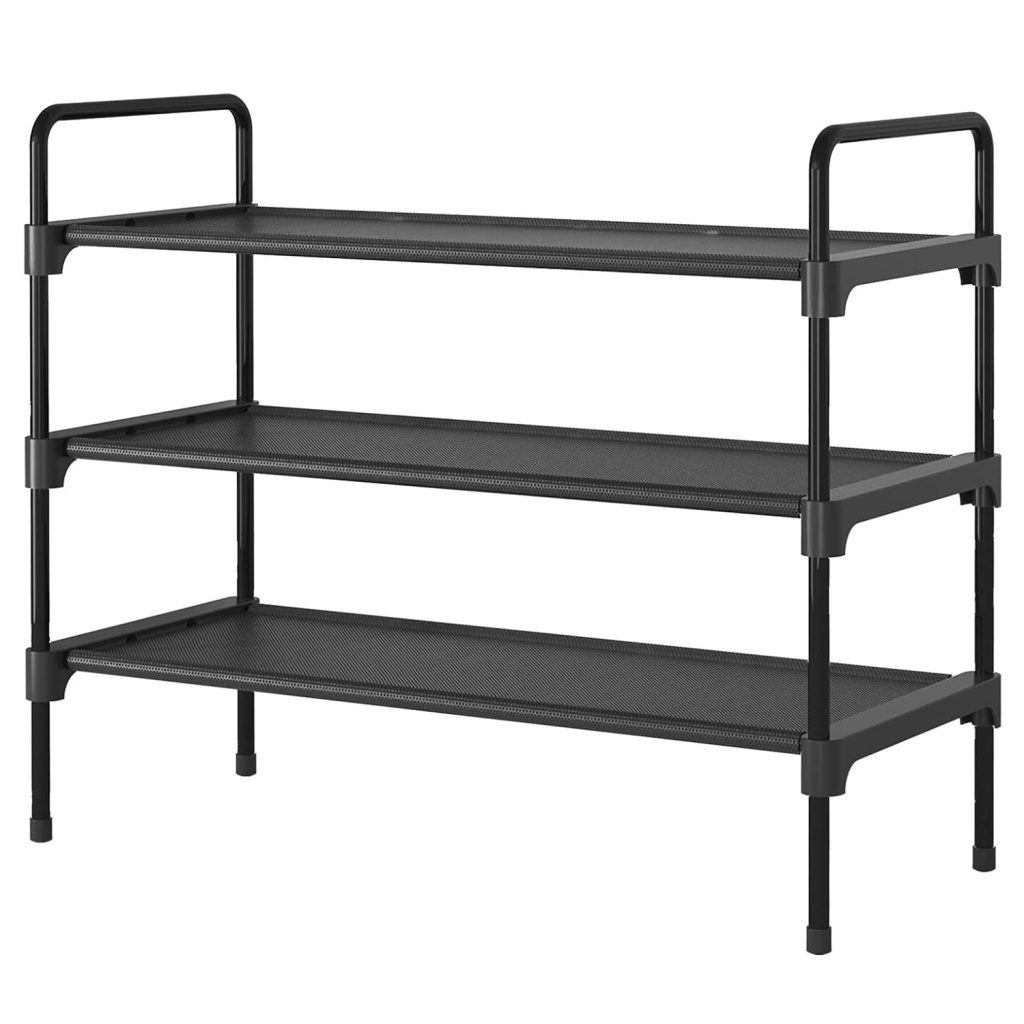Shoe Rack for Closet, Sturdy Shoe Shelf for Entryway, Space-Saving Shoes Organizer and Storage, 27.6″ x 11.8″ x 22.6″, Black