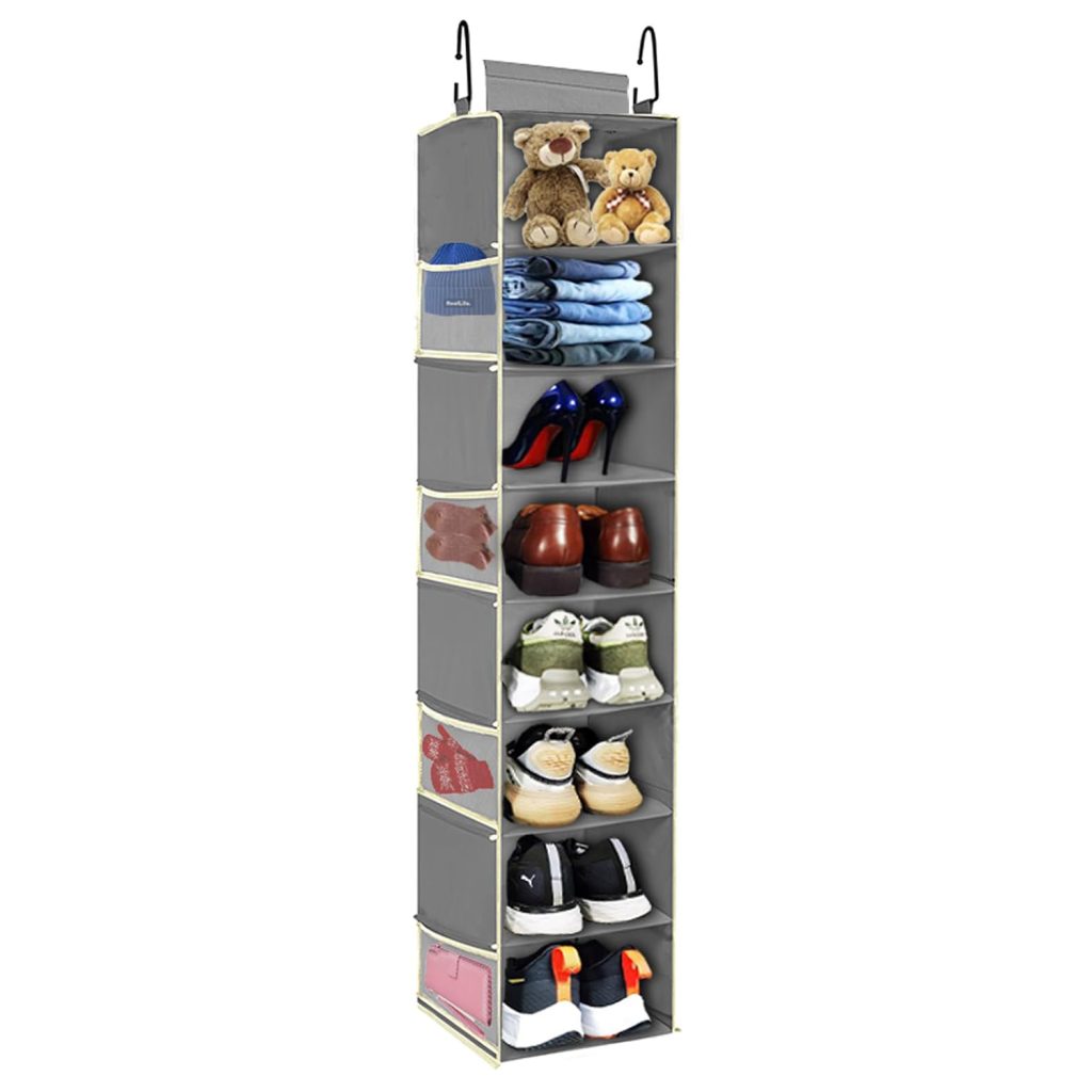 Large-Sized Hanging Shoe Organizer 8-Shelf, Hanging Closet Organizer with 8 Side Pockets, Wider Hanging Shelves for Storage Shoes Clothes 9″ W x 11.8″ D x 48″ H, Grey